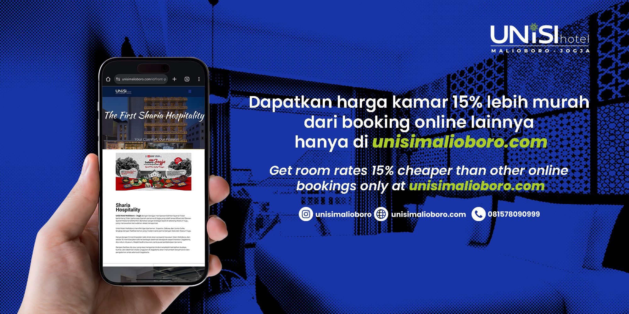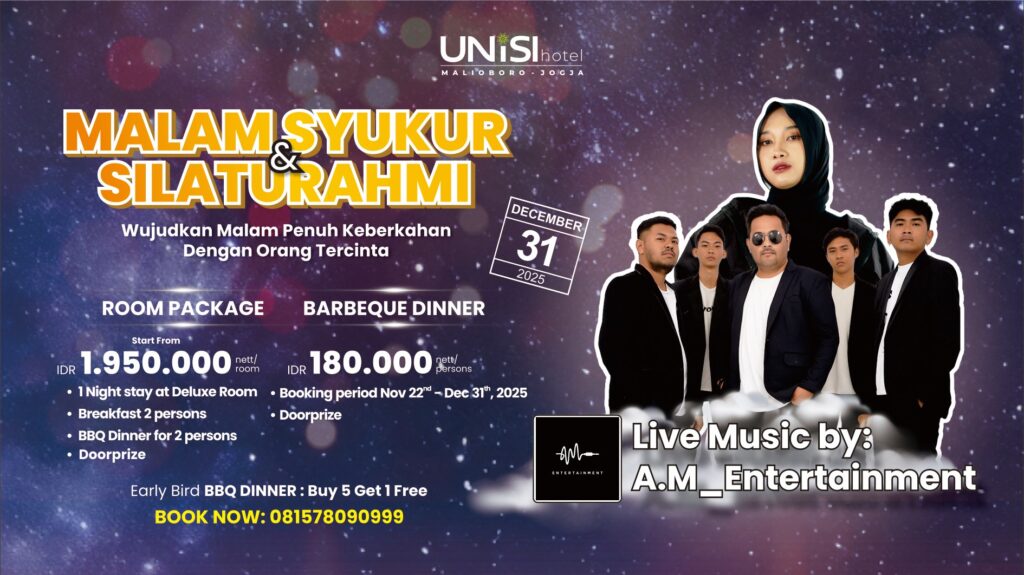 Unisi Hotel Malioboro – Jogja proudly presents the first certified Sharia-compliant 3-star hotel in Jogja, officially accredited by the National Sharia Council (DSN) – MUI. Perfectly located right across from Tugu Train Station, our hotel offers unmatched convenience and easy access to transportation.